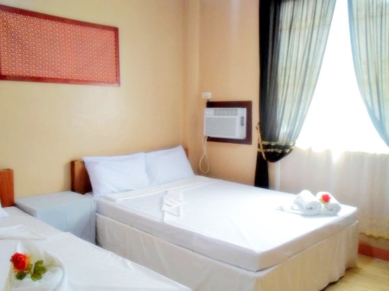 The double rooms accommodate two guests and have either a queen size bed or two twins that may be joined together to form a king size bed. All rooms feature wood furnishings, a large window draped with an curtain, and a bathroom.